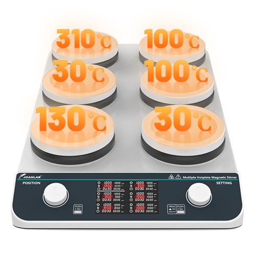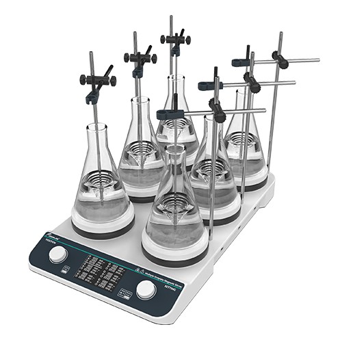 · 盘面&液体独立控温 · 可同步/异步允许 · 盘面温度可达310℃ · 单工位最大搅拌量2L · 可定时,调速,控温